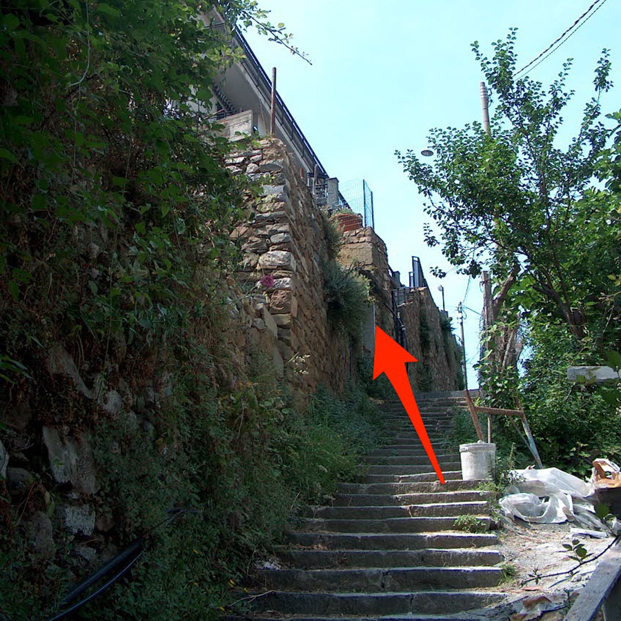 on the right of the church take the path